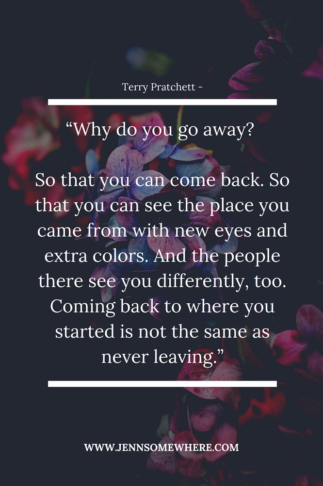“Why do you go away? So that you can come back. So that you can see the place you came from with new eyes and extra colors. And the people there see you differently, too. Coming back to where you started is not the same as never leaving.”